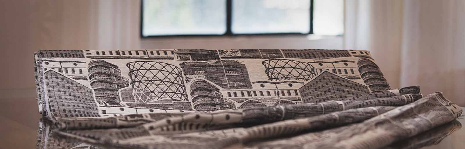 这款现代气息浓郁的面料中包含了工厂、现代化建筑和停满进站列车的火车站等多种元素。从城市景观到乡村田园,我们打破原有界限,将优雅融入其中。