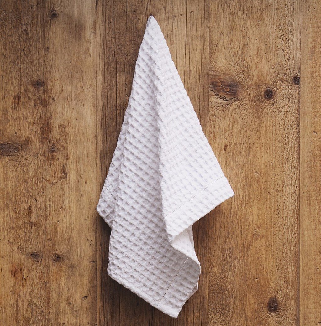可以搭配蜂巢格面料的浴室脚垫和水洗毛巾。