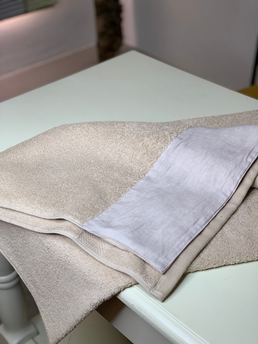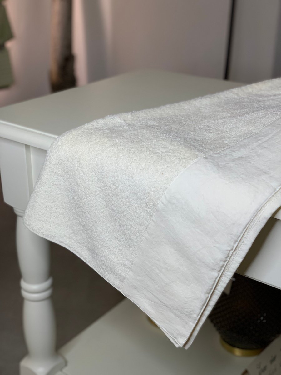 装饰纯亚麻混纺花边的特里布毛巾,由维纳斯面料织成。