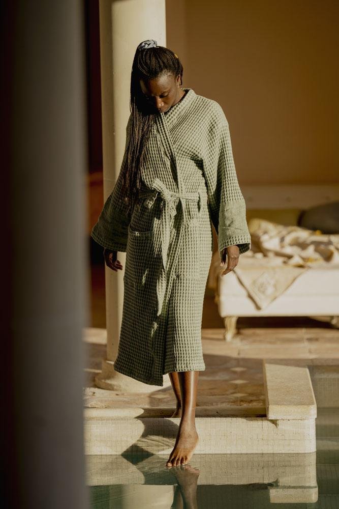华夫格亚麻里衬浴袍
