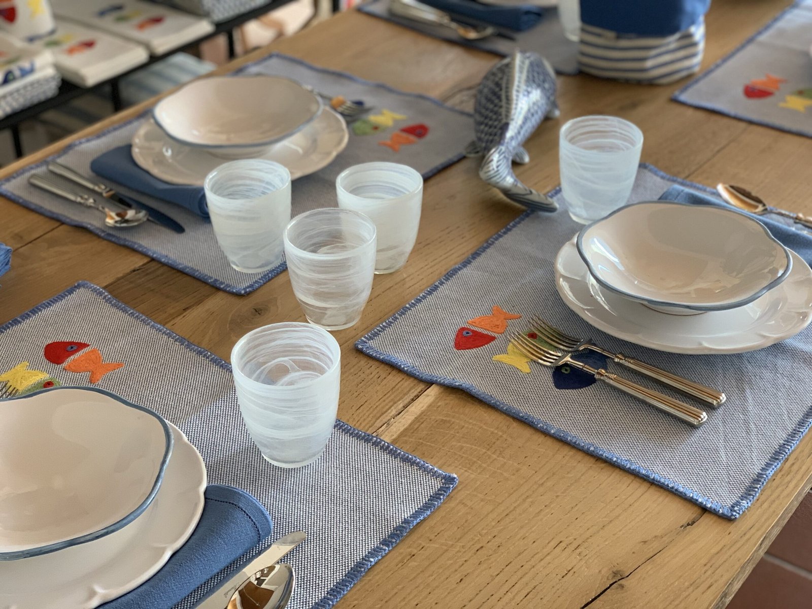 由复古卡森帝诺夏季亚麻(三股捻)织成的刺绣锡耶纳针法长餐垫。