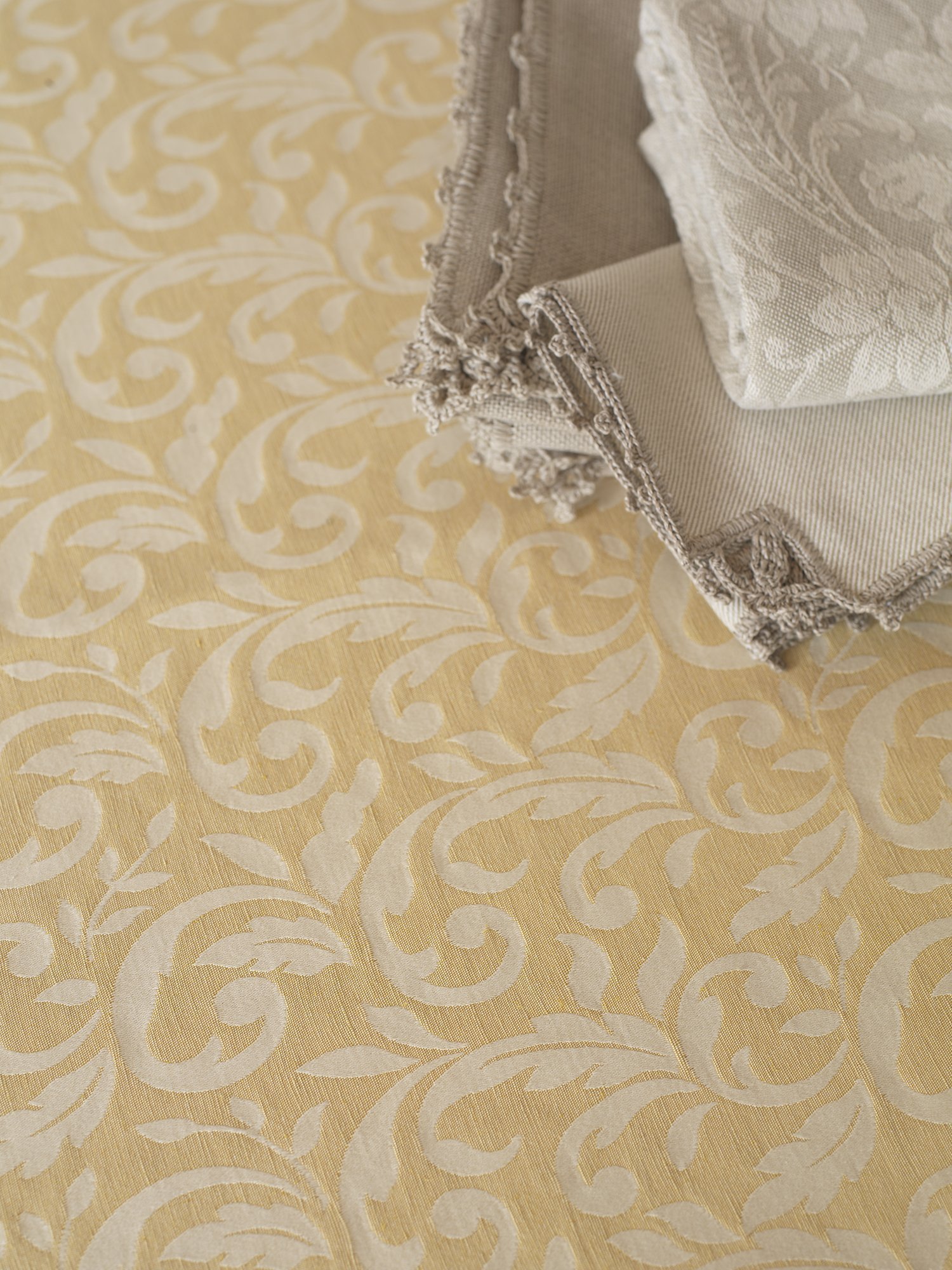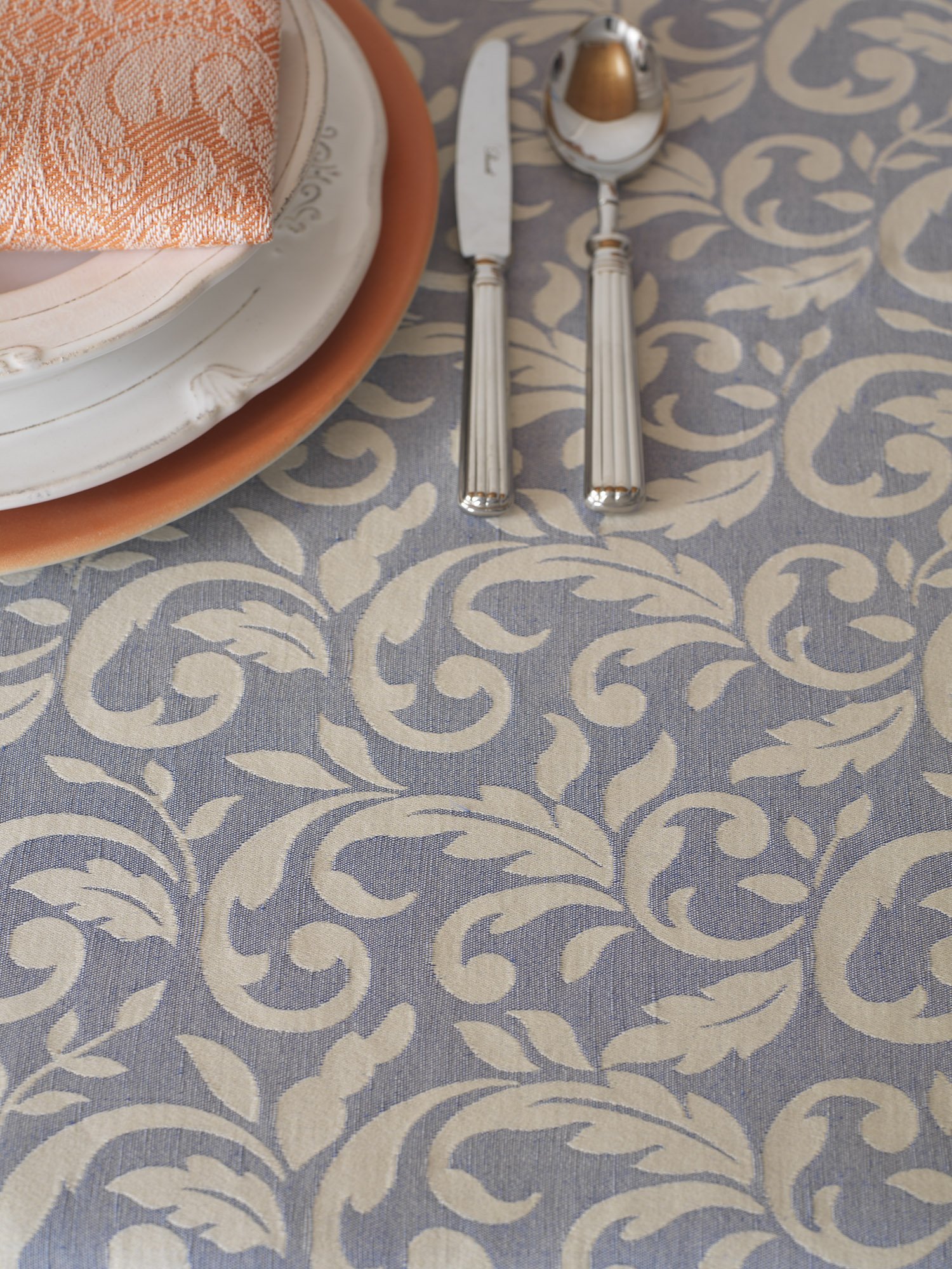 这款优雅的桌布使用亚麻混纺技术,在我们最古老的提花梭织机上完成。