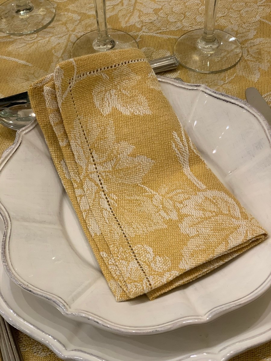 This 提花 设计 “Cinque di Cuori” is perfect for tablecloths, long placemats and napkins.