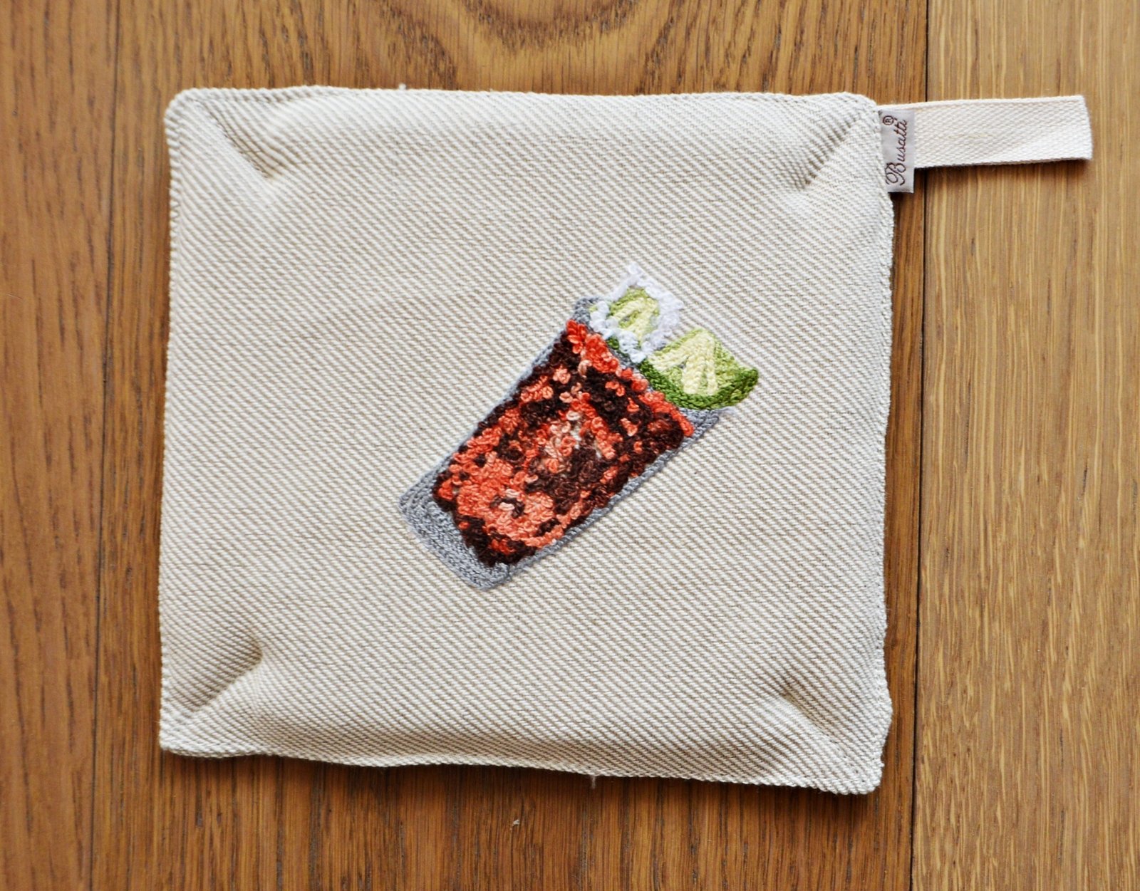 锅具隔热垫是每个厨房的必备品,而通过搭配刺绣装饰,使它变成了一件精美的工艺礼品!刺绣图案只出现在隔热垫的单面。