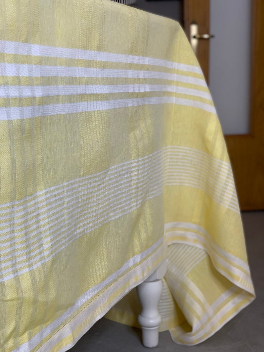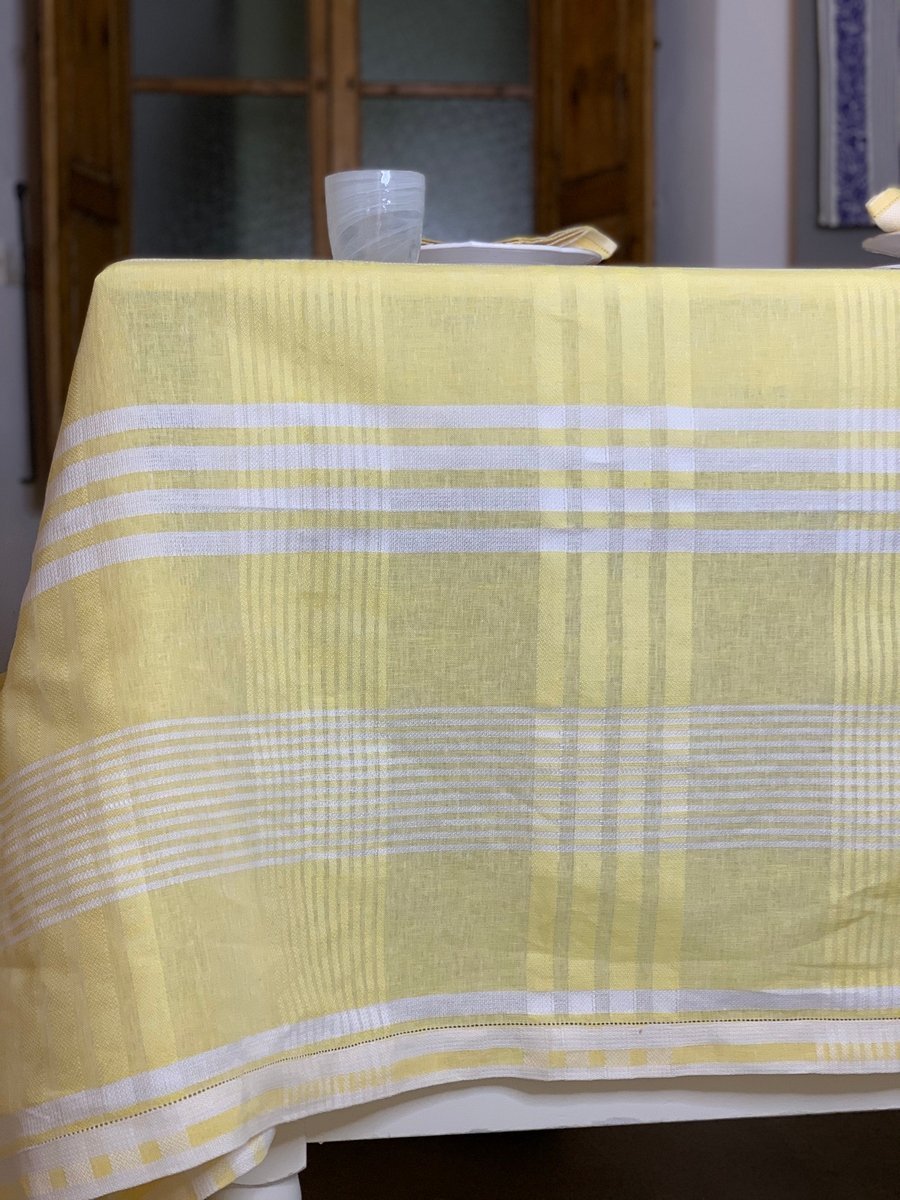 100%亚麻褶皱花边桌布,搭配6块100%亚麻餐巾